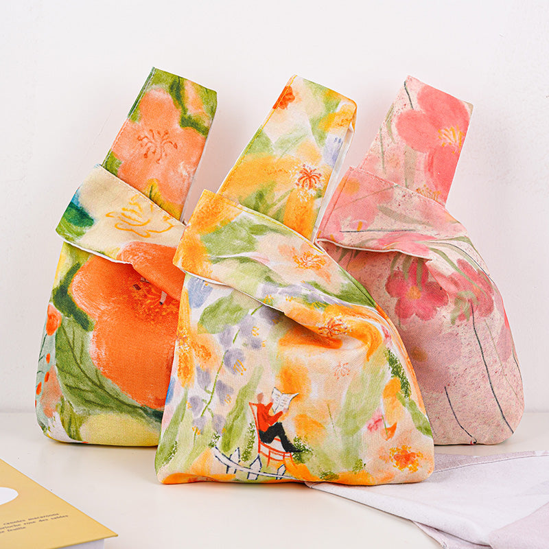 Japanese Knot Bag,Wrist Bag, Embroidered Tote Bag,Wedding Gift Tote
